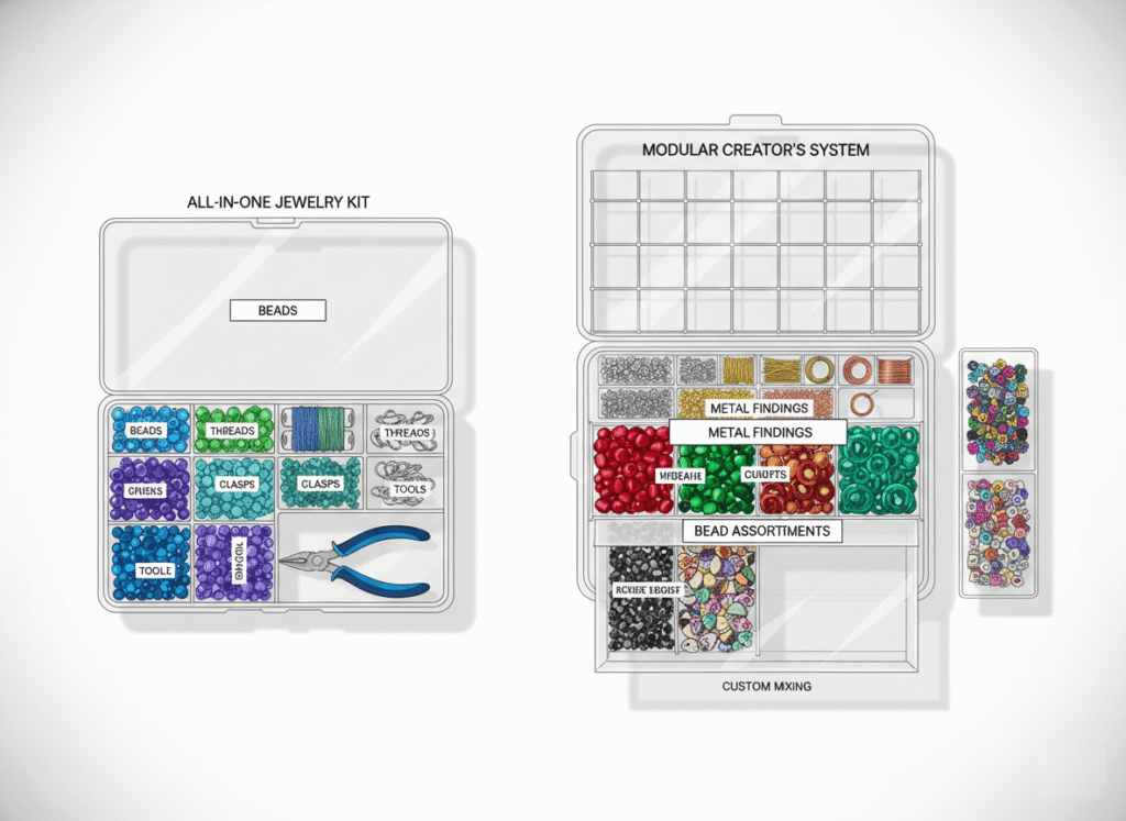 Both all-in-one and modular jewelry bead kits have distinct value depending on your business goals.