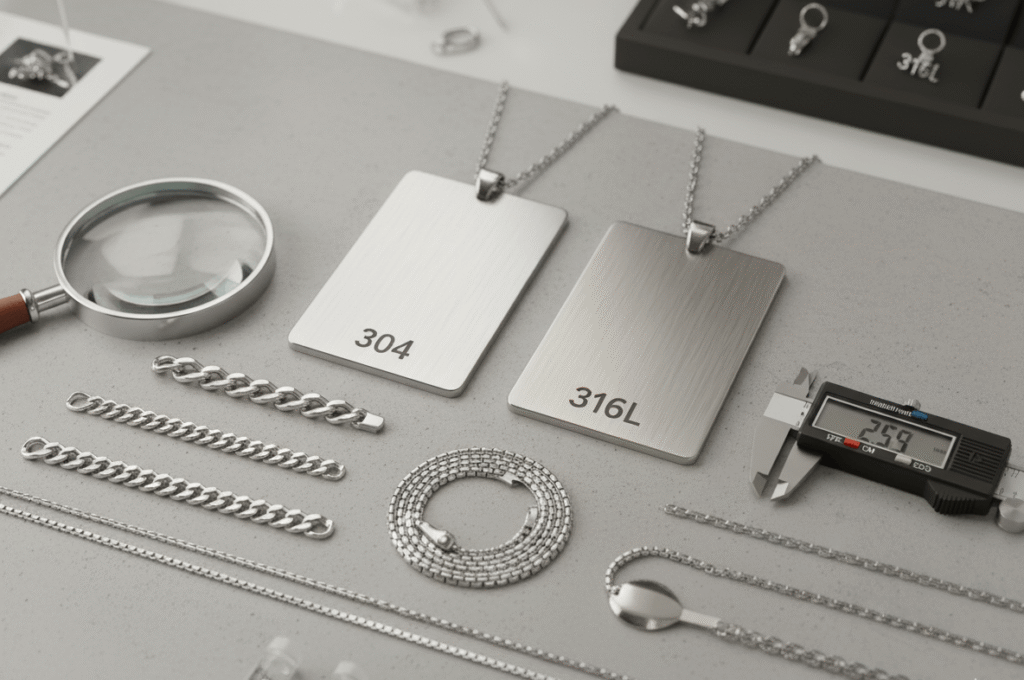When I first started purchasing necklaces from Chinese factories, I learned the material grade made the biggest difference in overall quality and longevity. Most jewelry suppliers use either 304 or 316L stainless steel, but not all grades are equal. Each grade offers distinct performance characteristics, particularly in corrosion resistance, comfort, and cost.