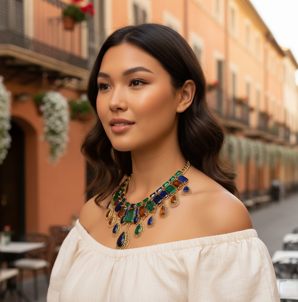 • Design Traits: Mixed chain lengths, contrasting textures, and coordinated pendants.