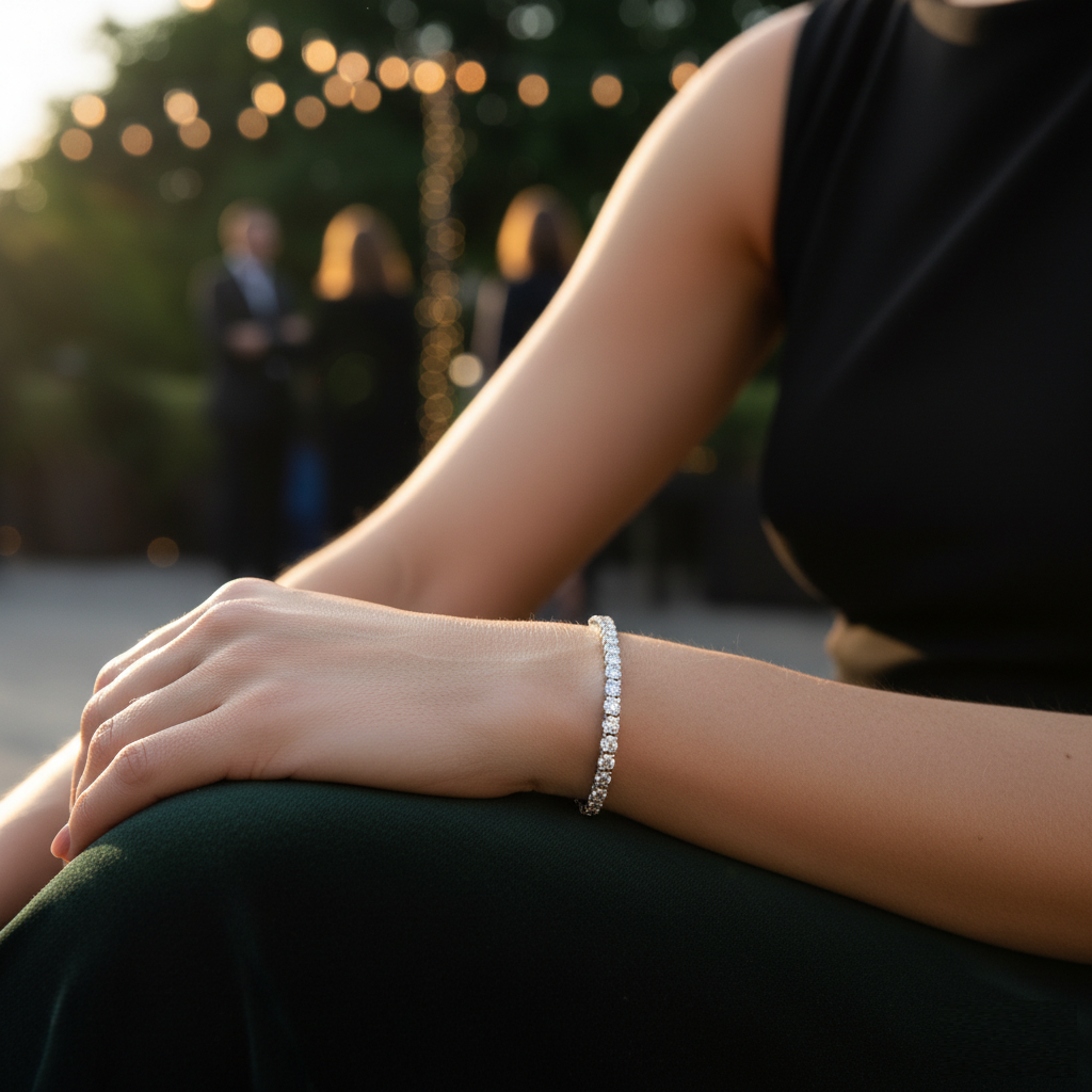 A classic and elegant choice, imitation tennis bracelets are composed of a single row of simulated diamonds or crystals. They are lightweight yet luxurious — the perfect accessory for evening events or bridal collections.